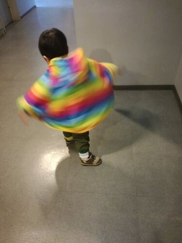 どうしてもカッパが着たいと譲らない2歳の息子。足ははやぶさ、ドクターイエローの靴下をコーディネートで散歩へ。晴れて雨予報が無いのにぽつぽつ天気雨。さては予知していたのかな。なんてwときおり子供の直感は当たるから面白い。